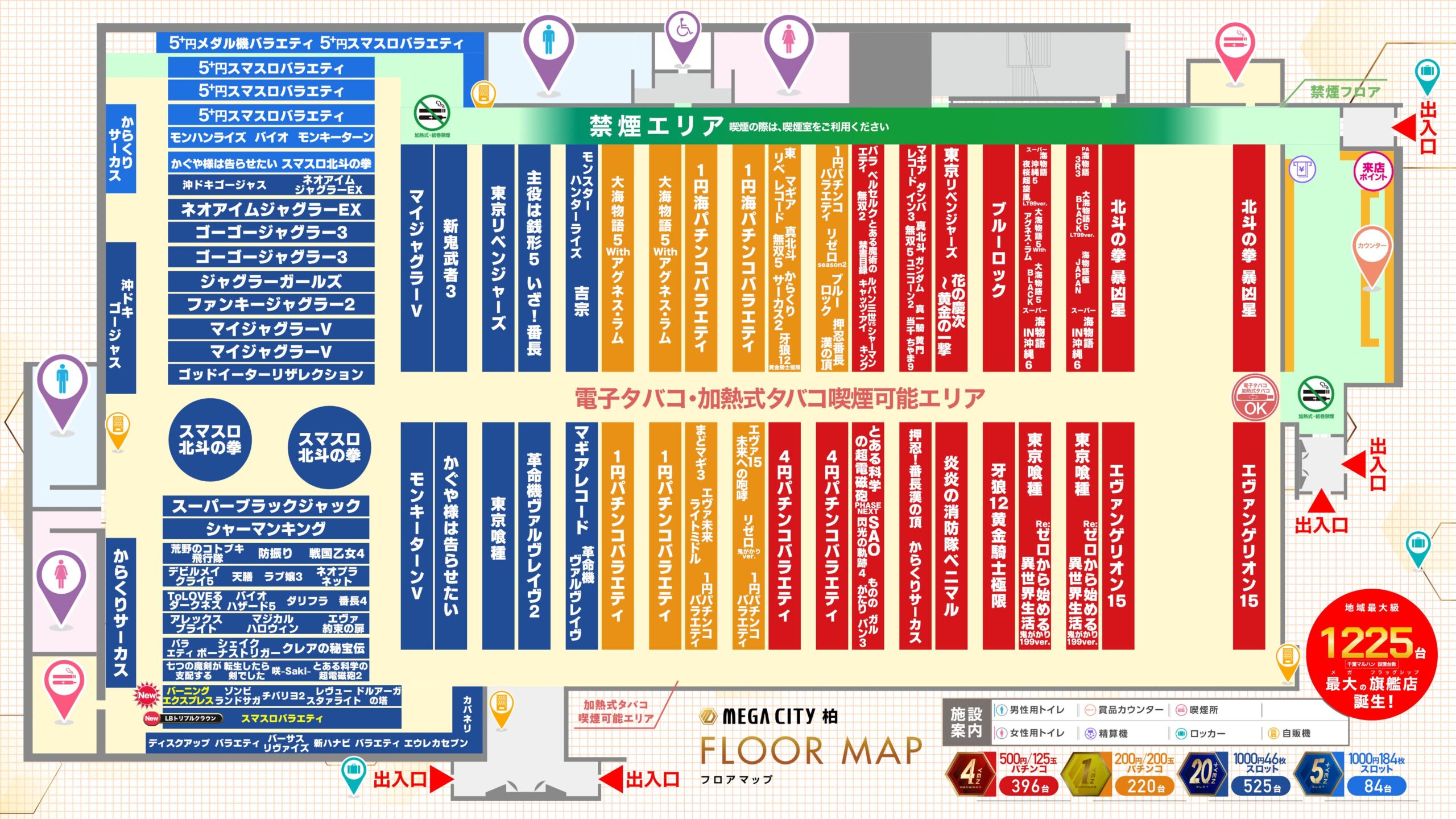 マルハンメガシテイ柏(パチンコ) 1F店舗 2023.06.062025.12.06 マルハンメガシテイ柏 営業時間 10時~23時 TEL: 04-7141-6805 マルハンメガシテイ柏の公式HPはこちら フロアマップ
