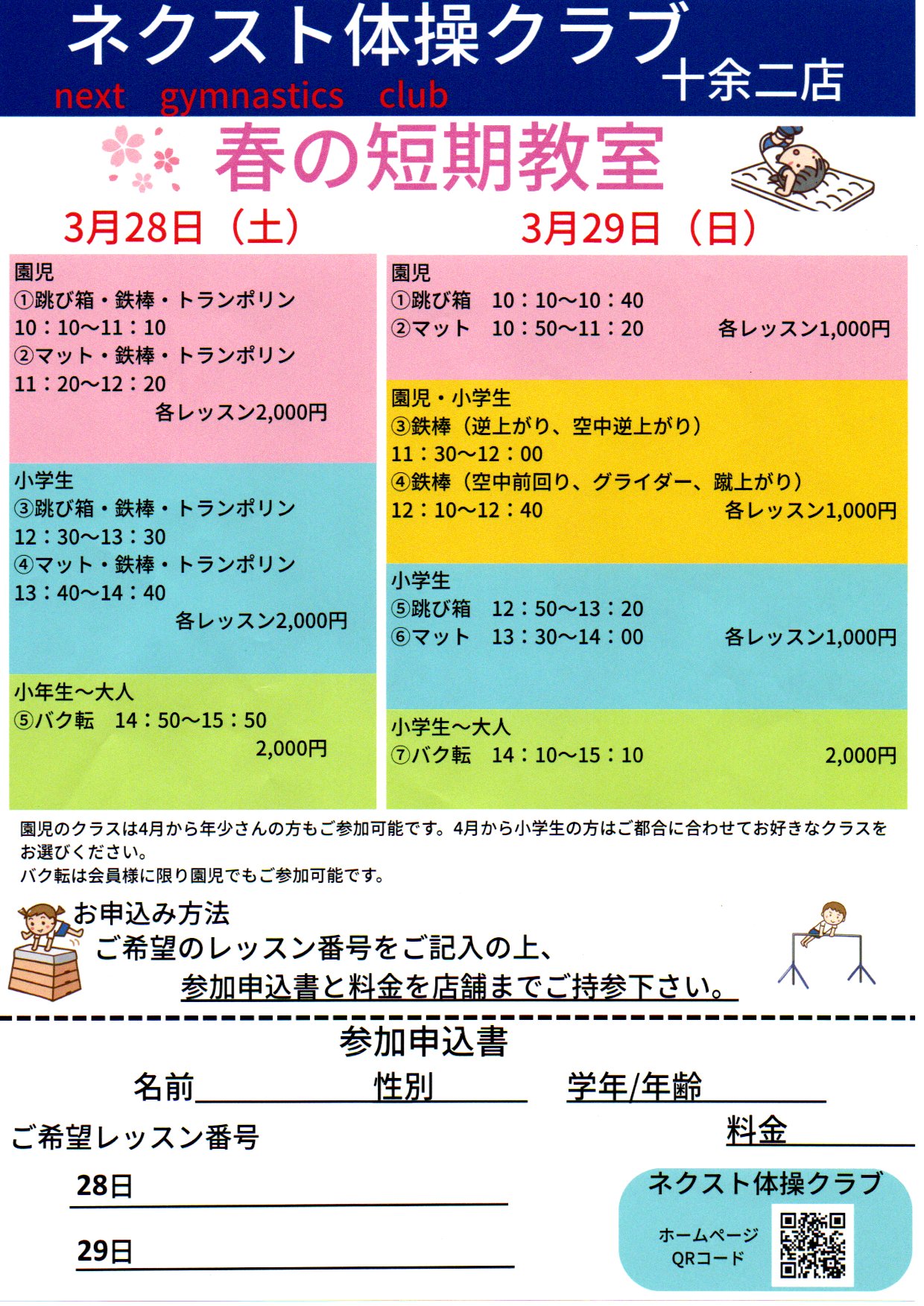 3月28日(土)29日(日)短期教室を実施します。106坪のひろ~い教室内で間近でお子様の体験の様子をご覧頂けます。 お友達のお子様をお誘い合せの上冬休みにご利用下さい。