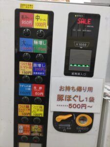 お持ち帰り品 豚一本1,200円~(あの二郎の豚をご家庭で) 豚ほぐし500円 生麵一玉100円 店員に直接ご注文下さい |