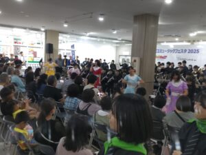 2025年市立柏高校は1年生から3年生まで吹奏楽部総勢約129名の生徒が参加。 開智国際大学は56名が参加。 今年は初めて宮古島より「真矢ようこ」さんをお招きして、会場が「イーヤーサーサー」の掛け声で一つとなりました。 演奏後に「生徒と客席の皆さんが参加出来る抽選会を実施」ステーキ・カップラーメン・館内で使用出来る飲食無料券を景品としてご提供。今年も大変賑やかな内に閉会となりました。 ご来場頂きました皆様、顧問の先生・生徒の皆様ありがとうございました。 |